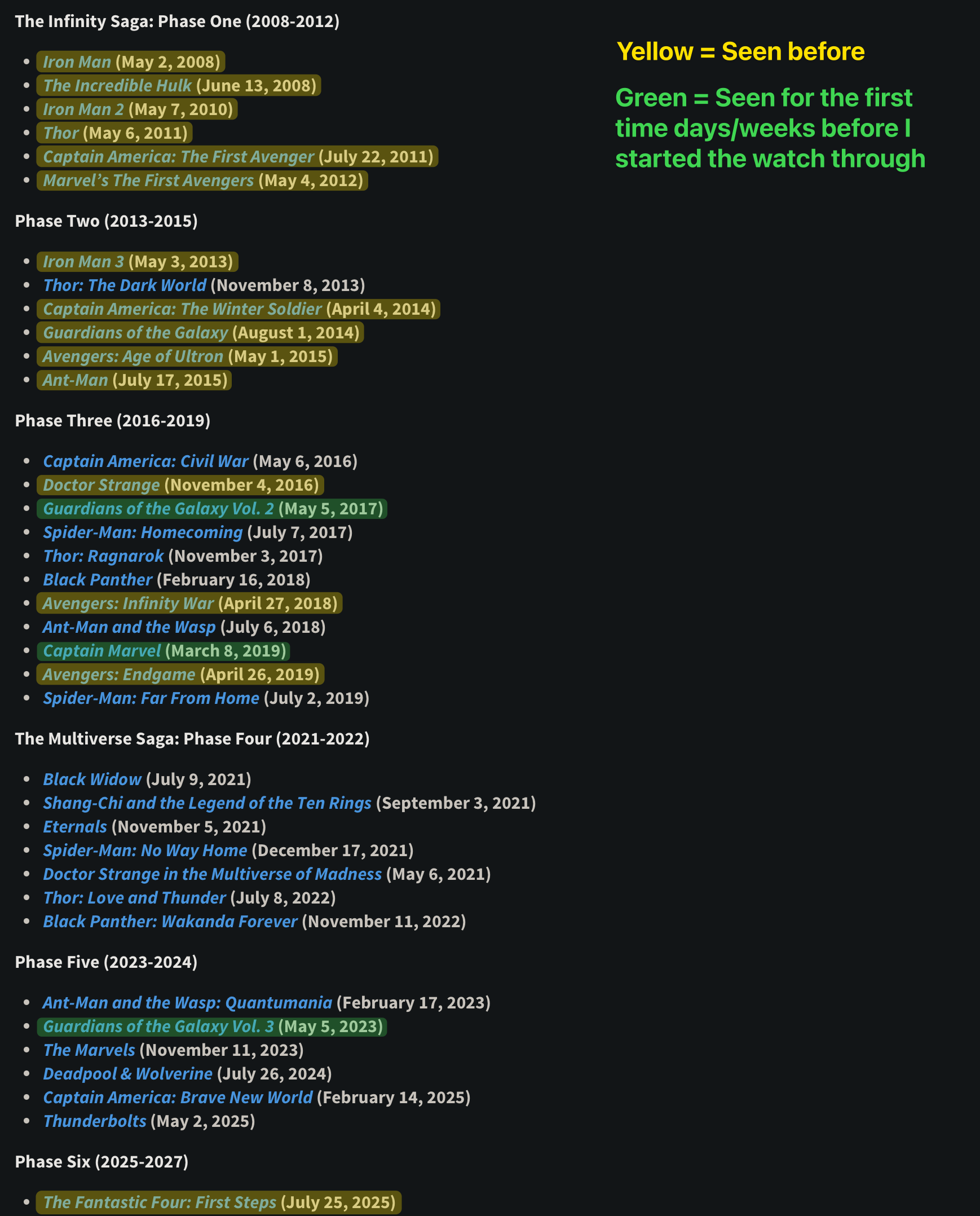 I have also decided to chronicle my watch-through of them by writing a blog post for every “Phase” of it.